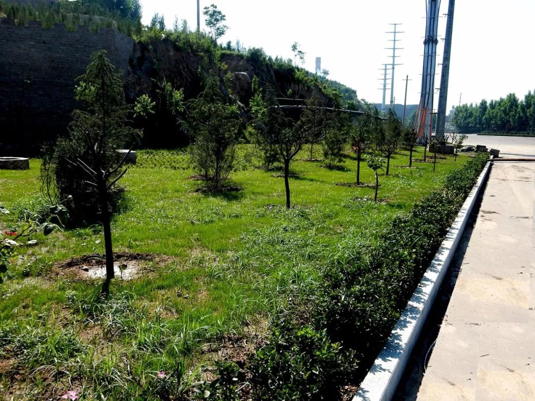 对厂区生产建设用地外的所有空旷场地实施绿化建设,对树坑、电线杆坑使用草坪进行铺垫。